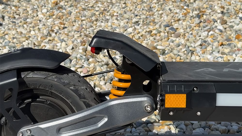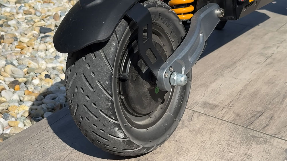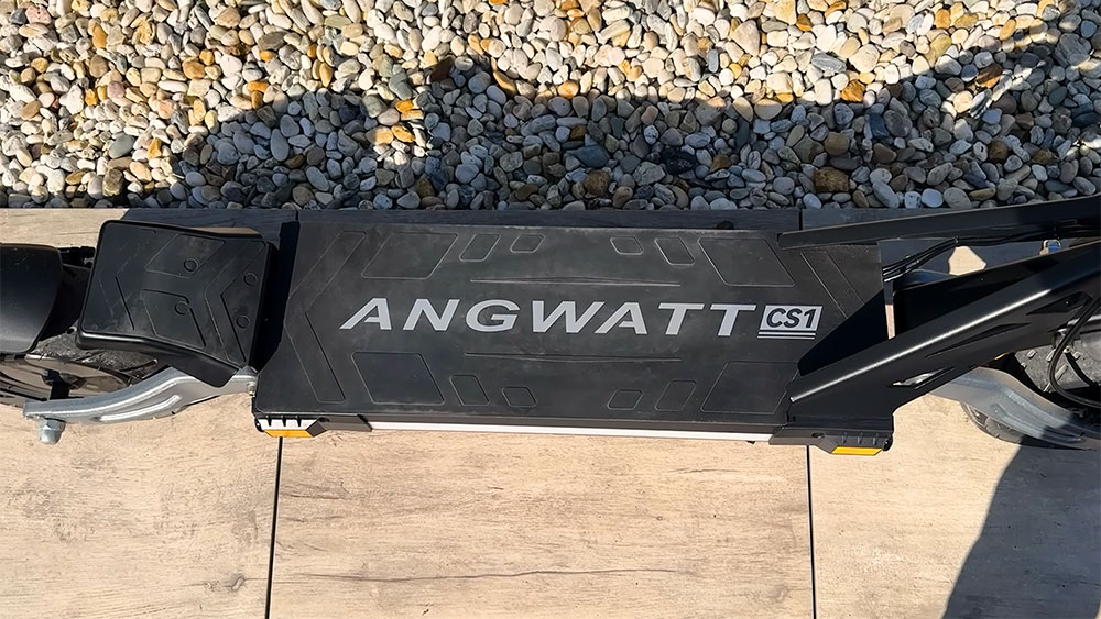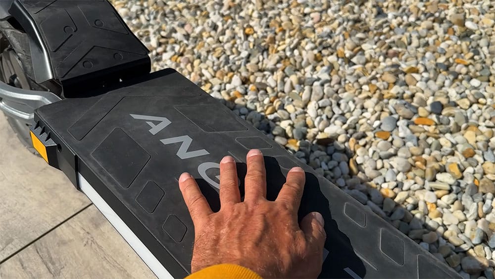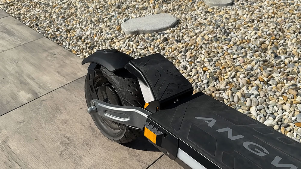 L’Angat C1 V2 2025 repose sur des pneus tubeless de 11 pouces, capables d’affronter aussi bien l’asphalte que les chemins de campagne. Son large deck de 50 x 19 cm, recouvert de caoutchouc antidérapant, assure une excellente adhérence. Un repose-pied arrière complète l’ensemble pour un meilleur confort de conduite.
