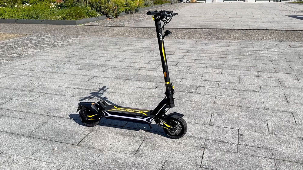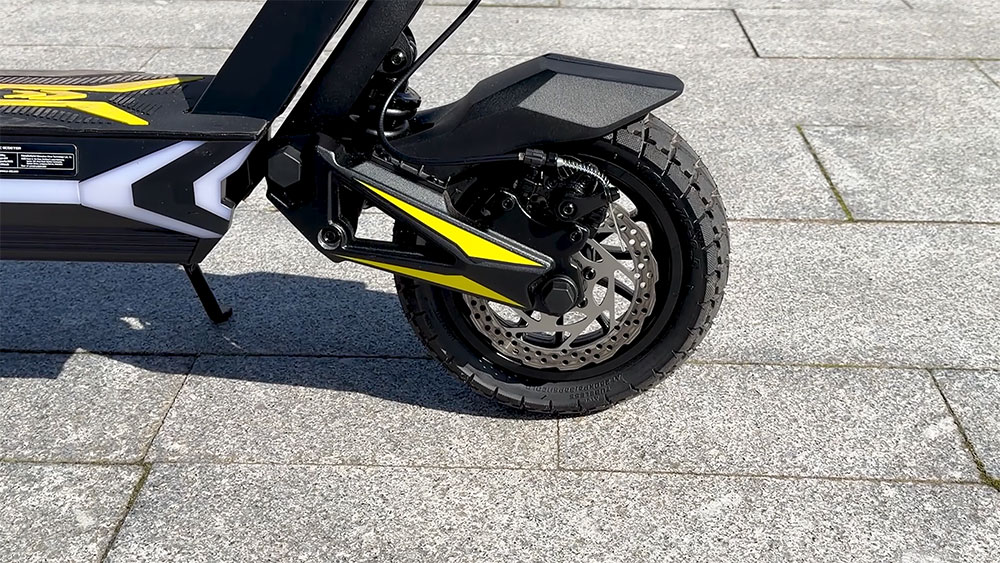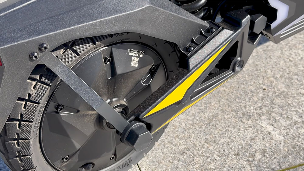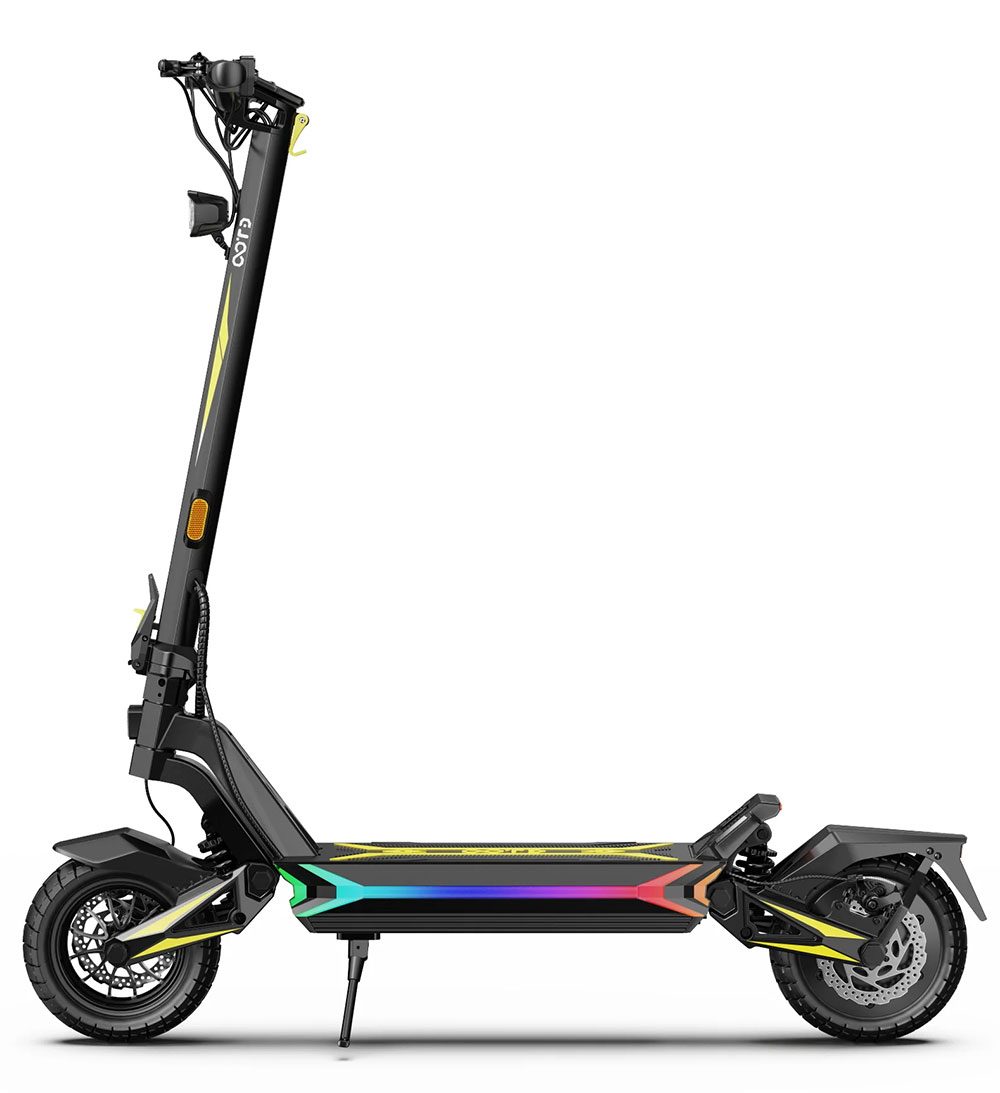 La OTD SR1 2026 ne passe pas inaperçue avec son coloris noir et jaune. Elle impose son style avec des dimensions généreuses et des pneus tubeless de 10 pouces. Voici ses points forts en termes d’équipement :