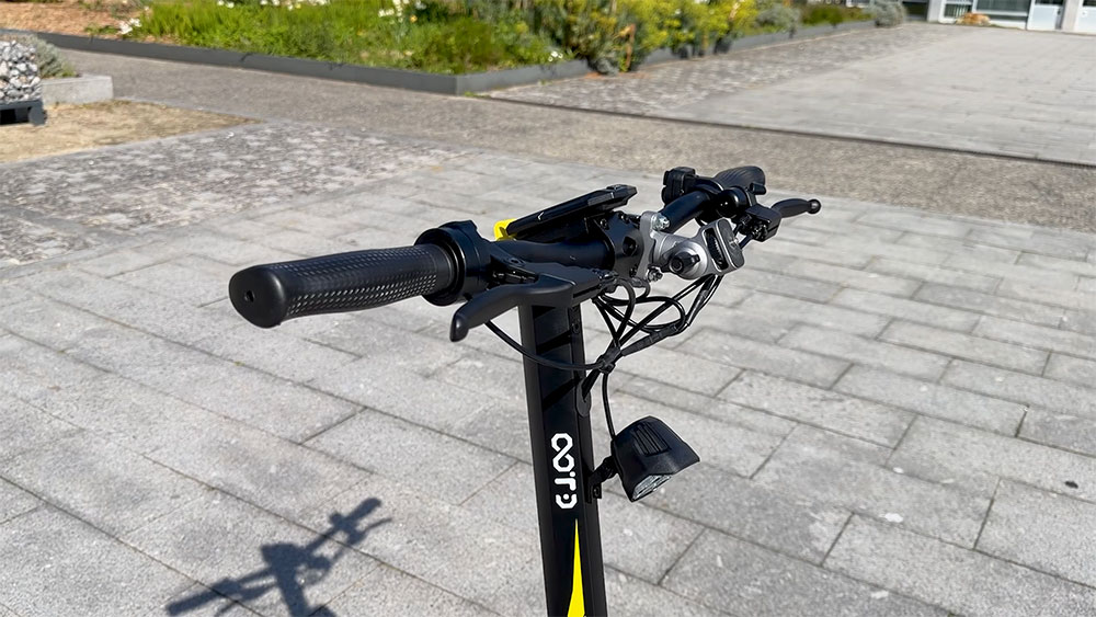 L’expérience commence par un unboxing très efficace. La trottinette arrive prémontée dans un grand carton protecteur. Par conséquent, il m’a fallu seulement 5 minutes pour resserrer la potence et partir rouler. Un petit regret cependant concernant le polystyrène d’emballage qui n’est pas très écologique. De plus, OTD remplace la notice papier par un QR code. Ce choix moderne économise du papier mais impose d’avoir son smartphone chargé. Le démarrage se fait via une clé NFC qu’il suffit de poser sur l’écran pour débloquer l’engin.