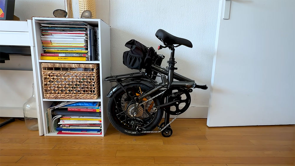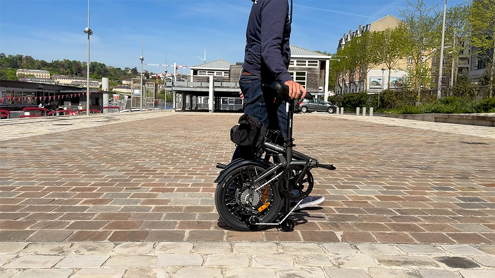 - Pliage “Trolley” intelligent : Une fois replié, tu n’as pas besoin de le porter. Tu peux le pousser comme une valise à roulettes grâce à sa géométrie astucieuse.