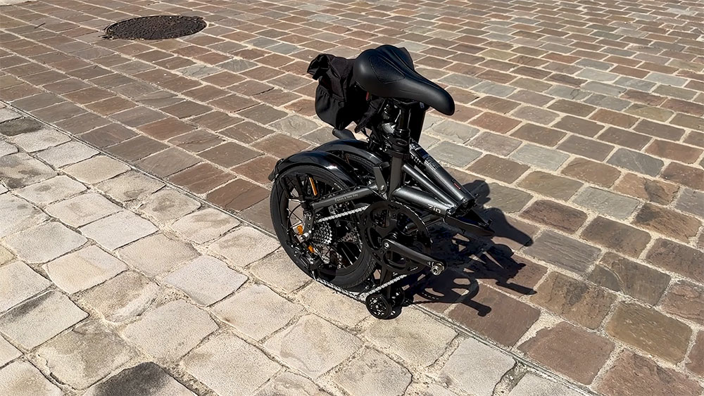 Côté sécurité, le freinage est assuré par des disques hydrauliques. C’est une option extrêmement rare sur les vélos pliables, souvent équipés de freins mécaniques moins mordants. En situation d’urgence à 25 km/h, le vélo s’immobilise en moins de 2 mètres, ce qui garantit une sérénité totale dans le trafic urbain dense.